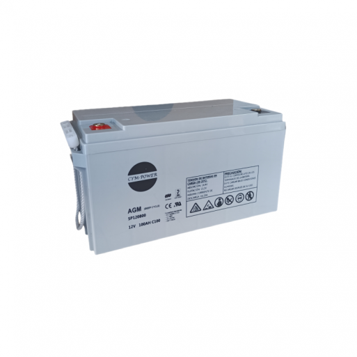 La Batería AGM 100Ah 12V CYMPOWER es una batería de tecnología AGM sellada y sin mantenimiento. Su aplicación es ideal para pequeñas instalaciones solares, equipos tales como autocaravanas Fiat Ducato, furgonetas VW Transporter , luces de emergencia, sistemas contraincendio, telecomunicaciones, instrumentos de medición, equipos de riego,etc. La batería viene en un formato compacto, con asas y terminales de tornillo M6 para que sea sencillo de transportar e instalar.